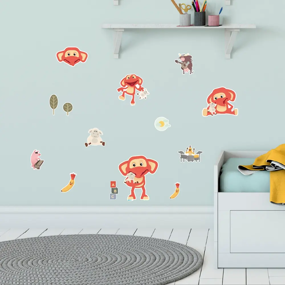 Klistremerkene sitter godt på glatte flater og kan tas ned igjen uten å etterlate merker – perfekt når rommet skal fornyes eller barnet vokser. Rett og slett en enkel måte å gjøre barnerommet personlig, koselig og litt mer levende!