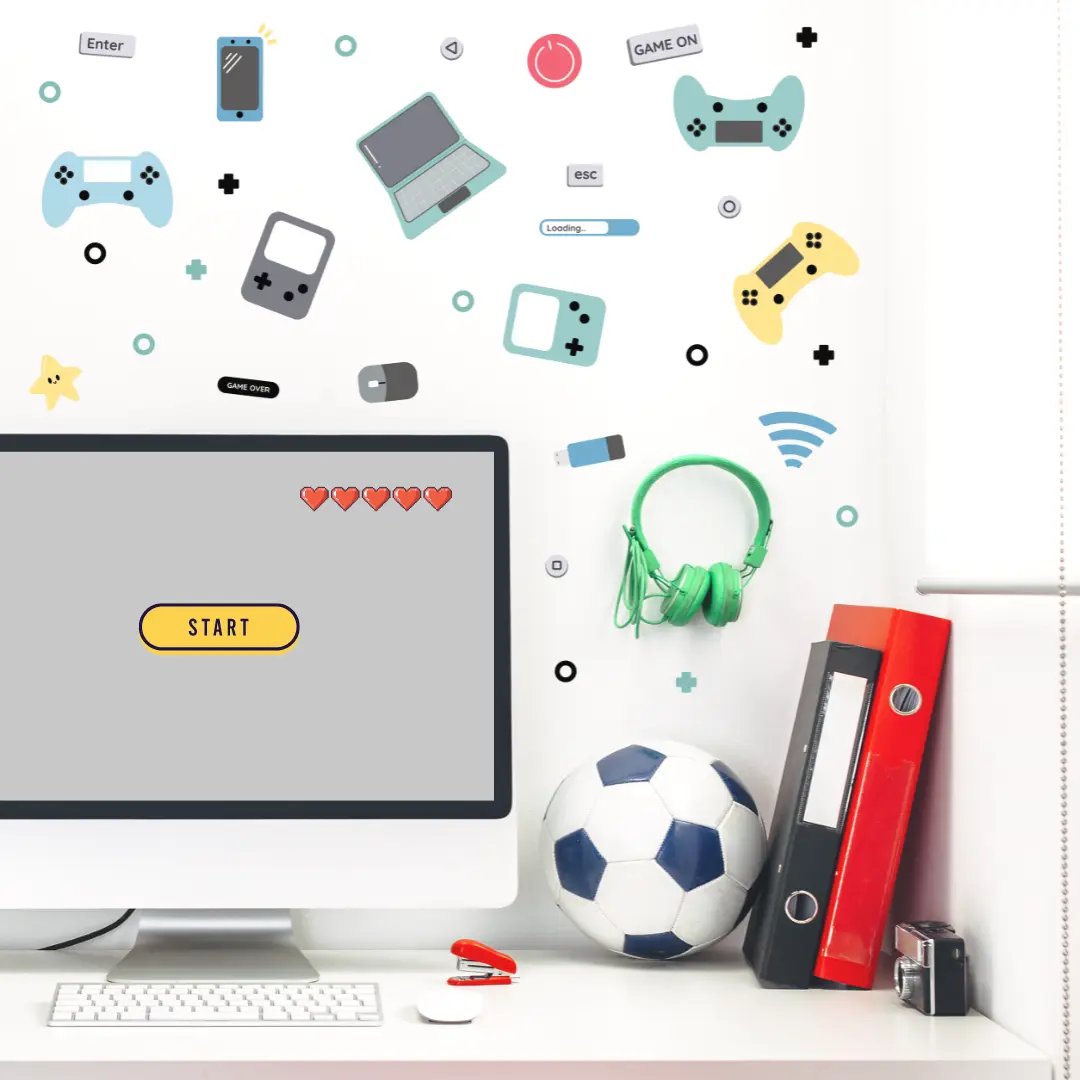 Forvandle barnerommet til et ekte gamer-paradis med disse kule veggklistremerkene. Perfekt for å fornye rommet til både tenåringer og yngre barn som elsker gaminguniverset.