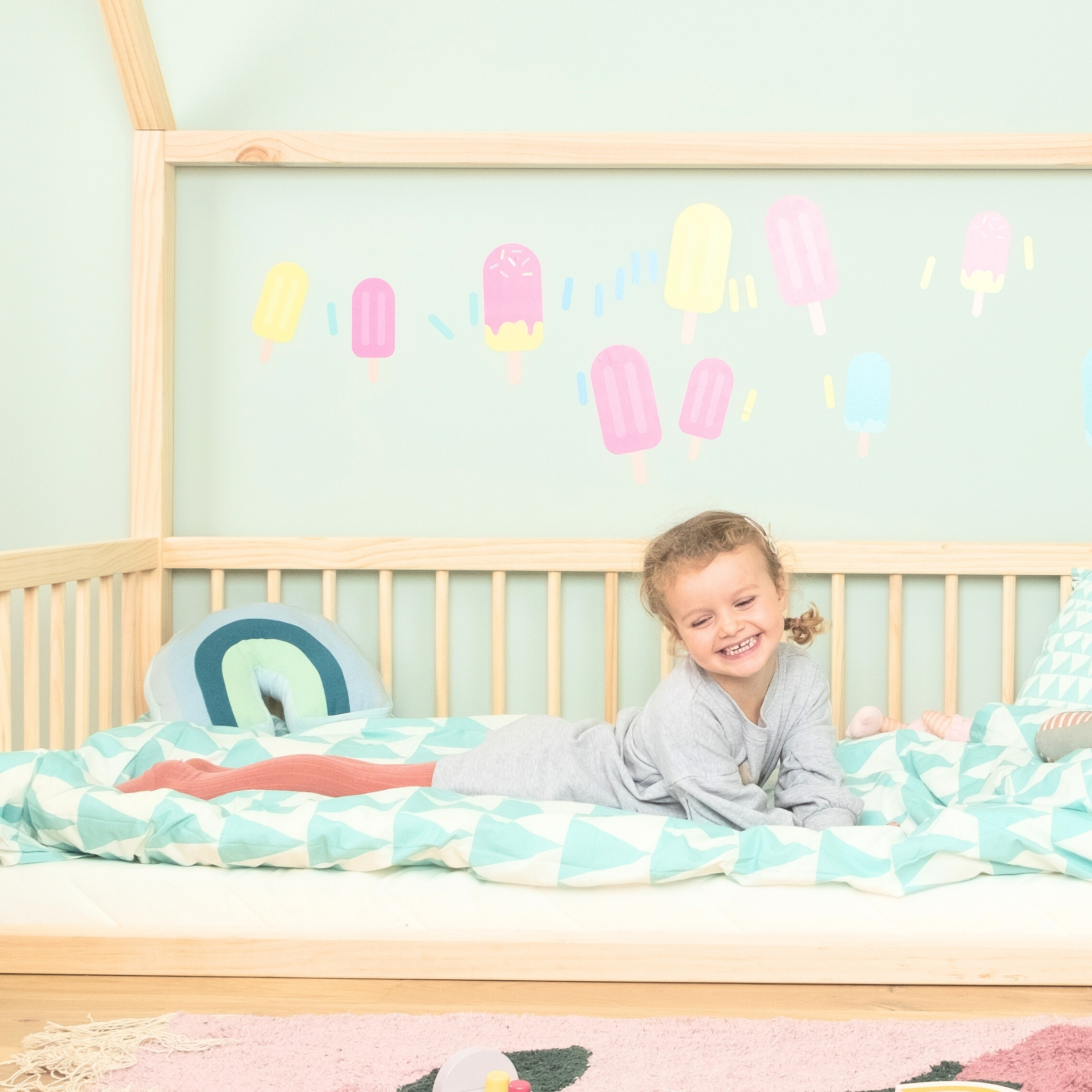 Med disse veggklistremerkene kan barnet ditt drømme seg bort blant iskrem og strøssel i friske, lekne farger! En ekte isdrøm på veggen som både pynter og gir rom for lek.